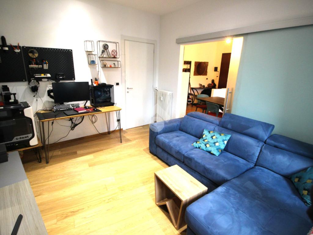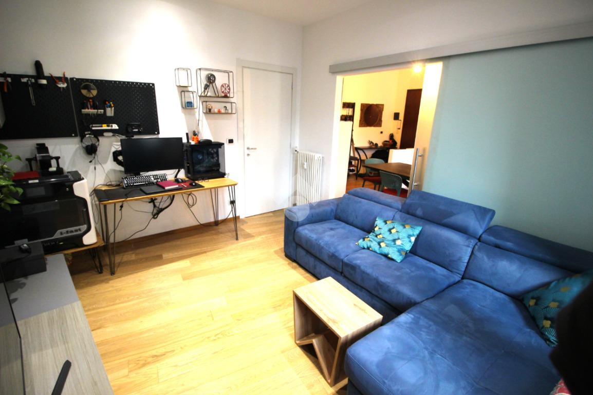 Soggiorno con accesso tramite porta scorrevole dalla cucina